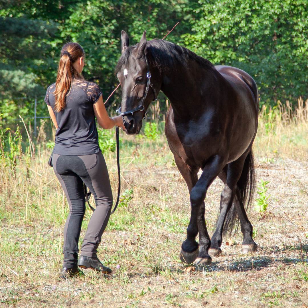 I welcome riders of every level and horses of all ages and breeds. Moreover, you don’t have to commit to a lengthy, expensive training program but have full cost control and receive valuable content! Stay as long as you like – any time!