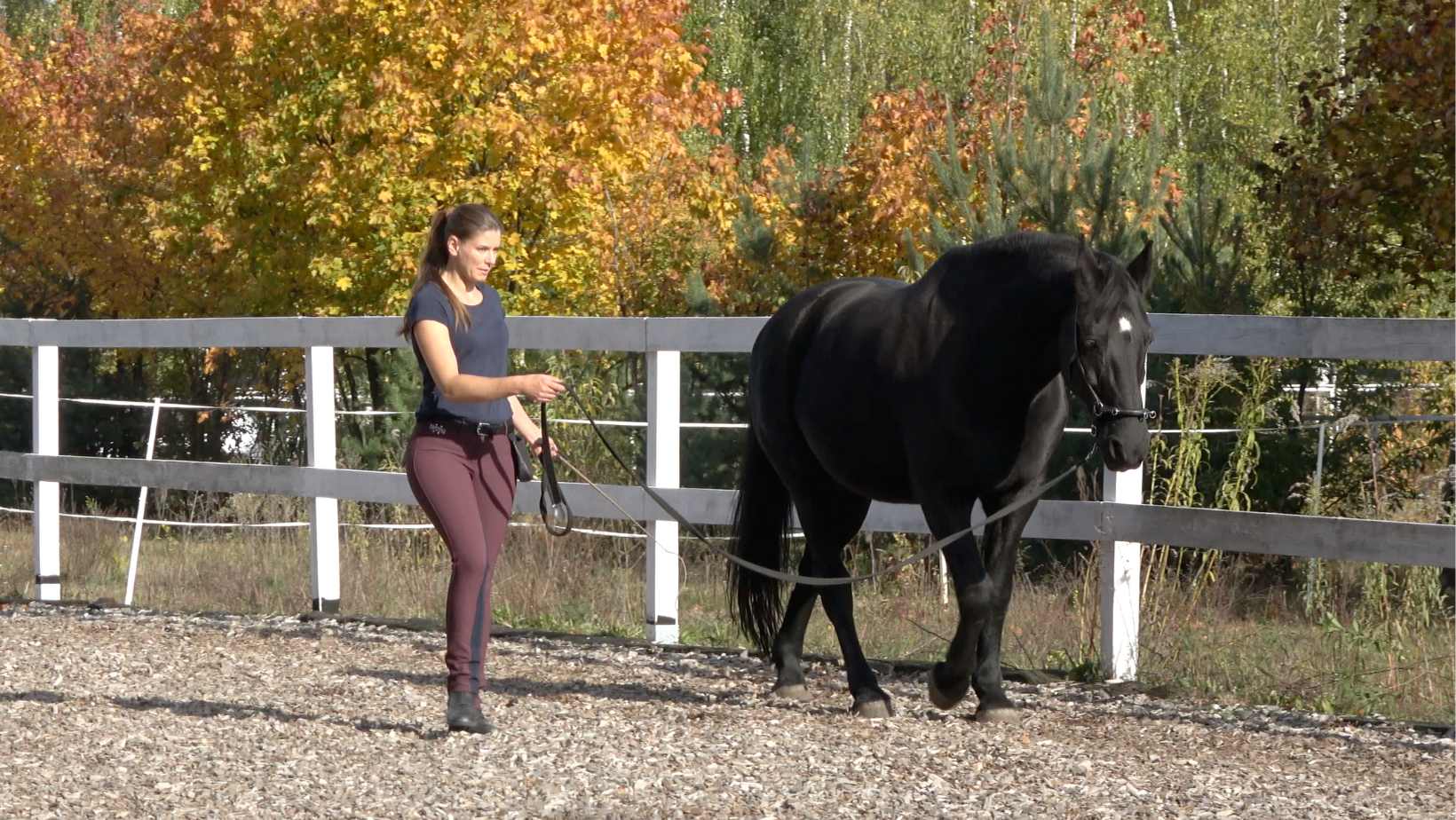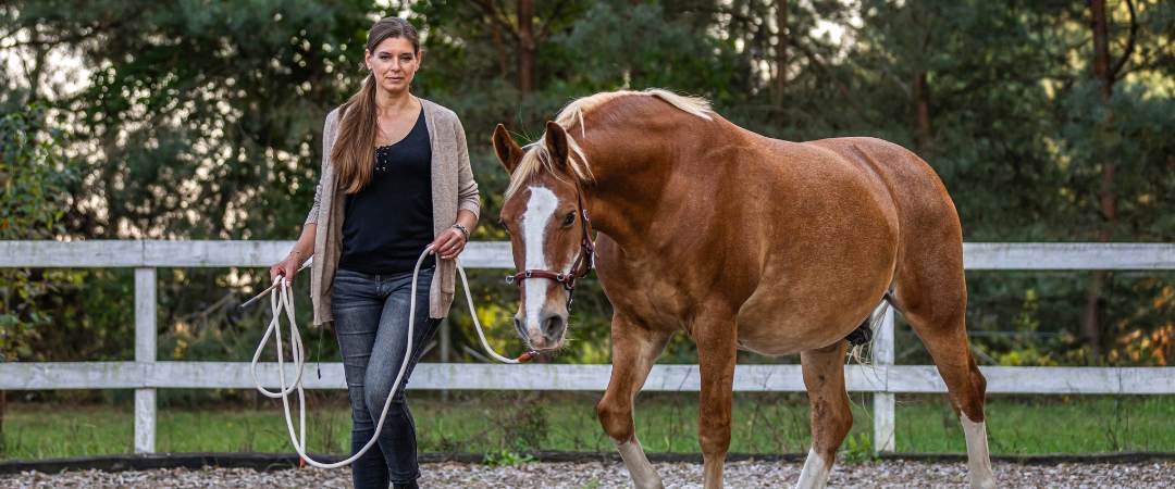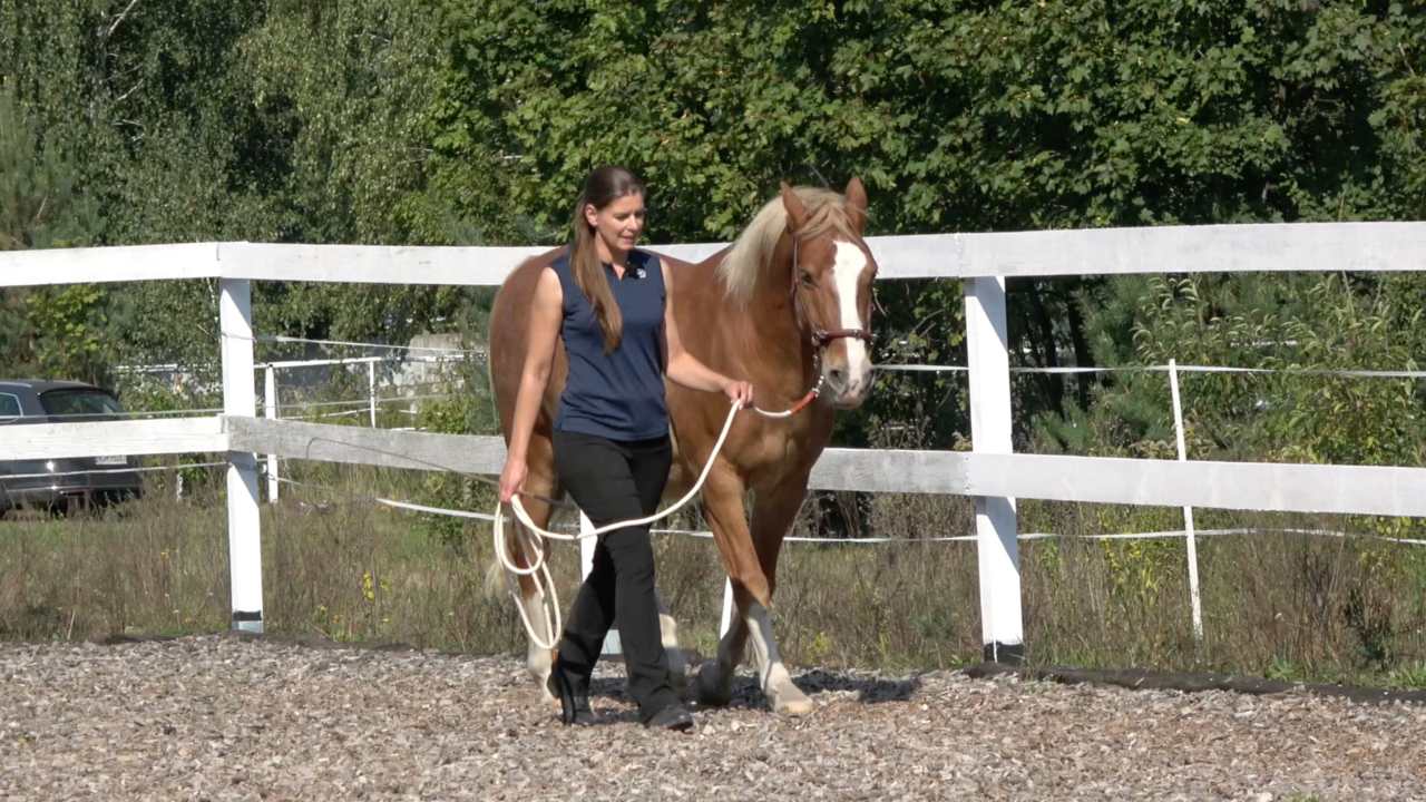 The leading exercises in module 4 are going well? Great, let's refine the communication with your horse even more! In module 5, you'll learn all about leading with distance. We'll speak about how to get and keep your horse at a distance and how to do the same exercises as in module 4, but now on a longer line. We will also cover shoulder yields and leading with distance in trot, leading over obstacles, and I will tell you how this work can be used for trailer loading. Again, you will get a sequence to test your skills.